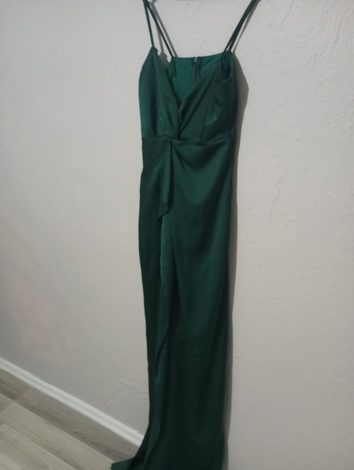 Drapeli tasarımı ve ince askılarıyla vücuda oturan uzun abiye elbise. herhangi bir defosu yoktur. diz üstü yırtmaçı vardır.