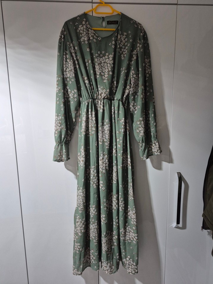 Yeşil renkte, bol kesim uzun elbise.uzun kollu, Bohem tarzda, bisiklet yaka. 3xl