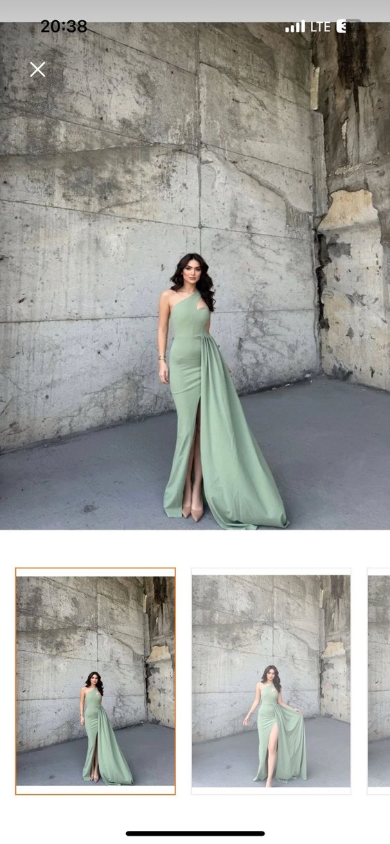 Yeşil uzun abiye, straplez ve askılı detaylara sahip, drapeli tasarımıyla klasik ve modern bir görünüm sunar. Düğünler için uygundur.