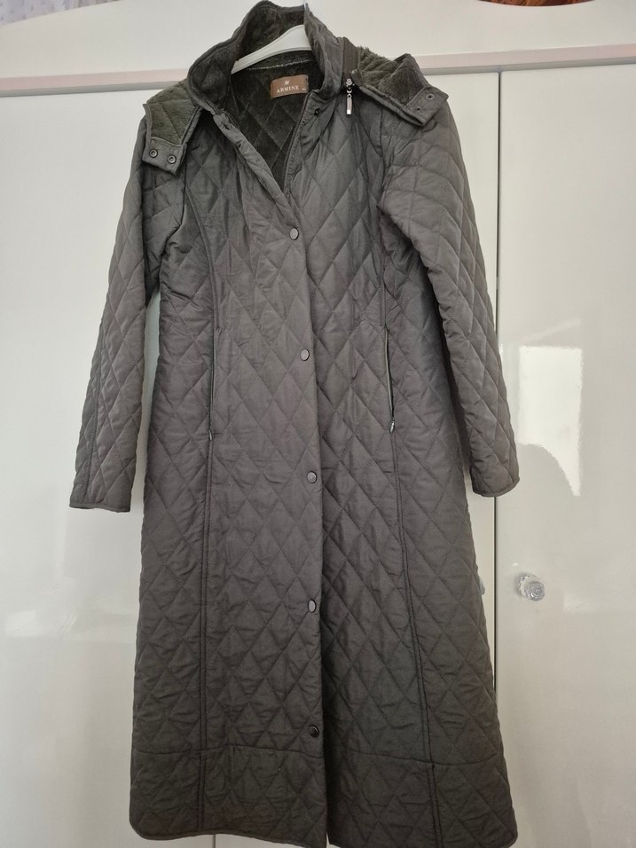 yeşil renkte içi polarlı mont. boyu uzundur tesettüre uygundur. kapüşonu vardır. hem çıtçıtı hem fermuarı mevcuttur çok az giyildi.
