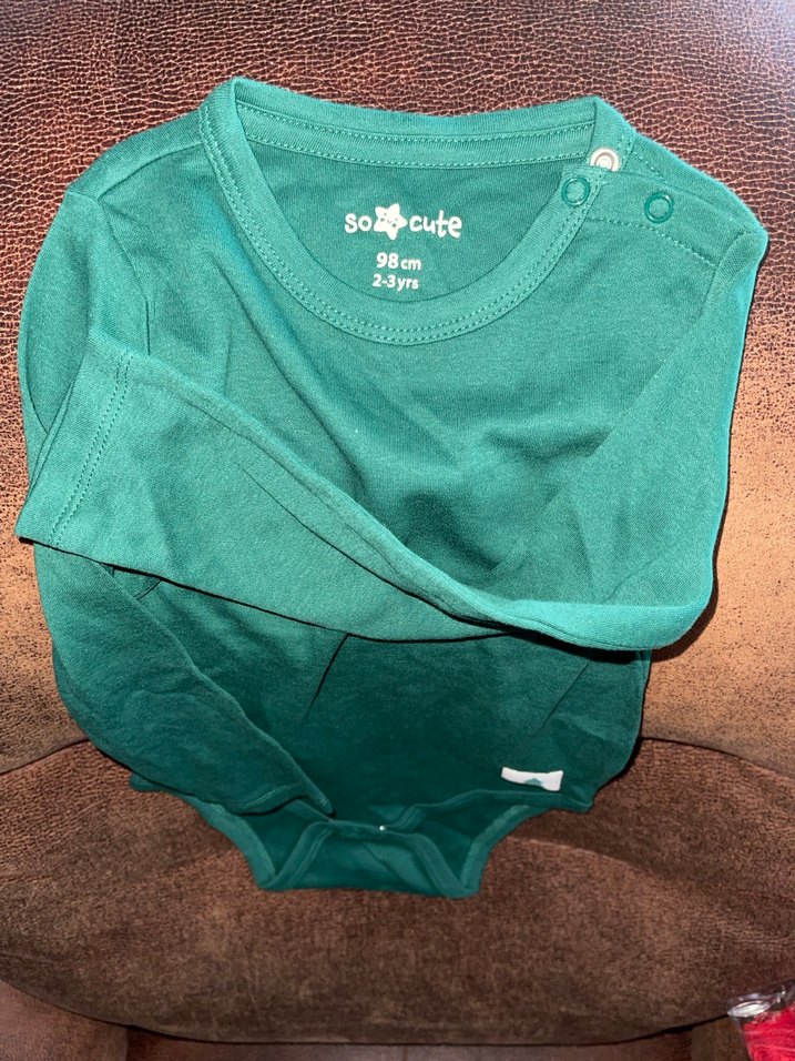 Koyu yeşil renkte, pamuklu kumaştan uzun kollu bebek body. Yuvarlak yaka ve düğmeli kapanışa sahip. Socute markalı, rahat ve sade tarzda.