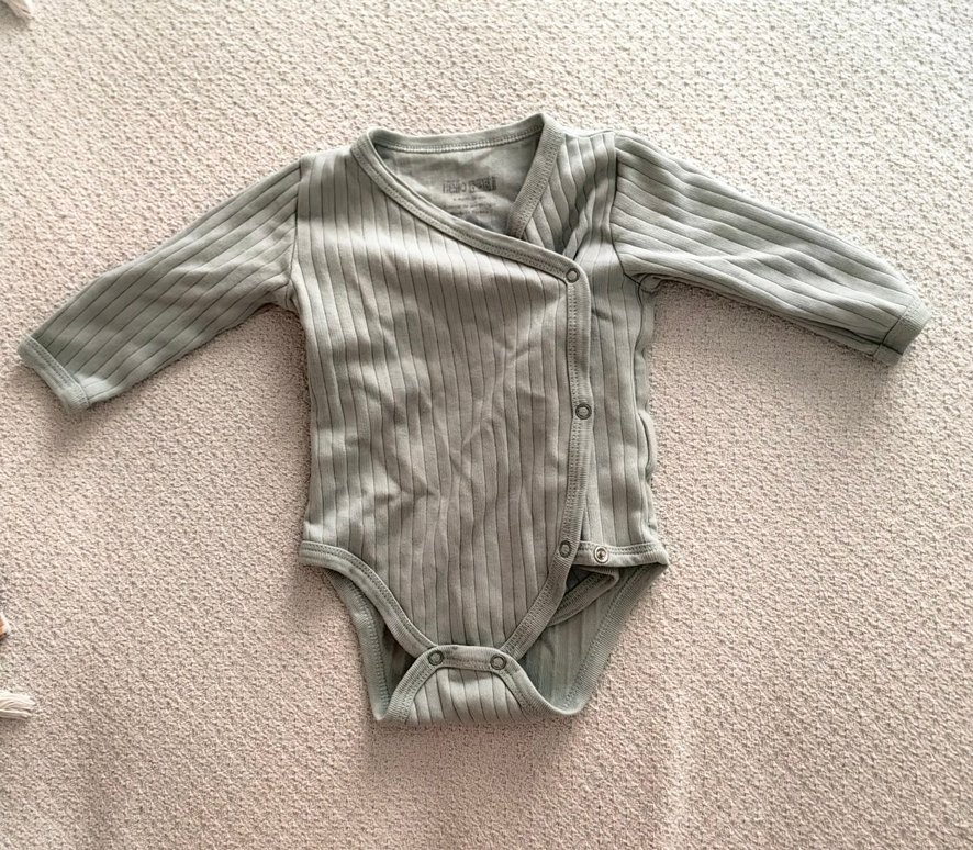 yeşil renkli, uzun kollu ve V yakalı çıtçıtlı bebek body. Yumuşak pamuk kumaştan üretilmiş, rahat bir kullanıma sahiptir.