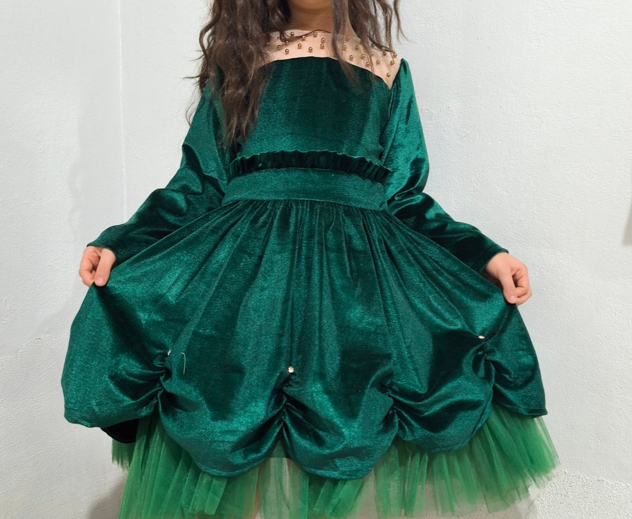 Yeşil Uzun Kollu Çocuk Elbisesi