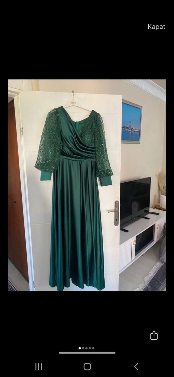 Yeşil Uzun Kollu Drapeli Abiye Elbise
