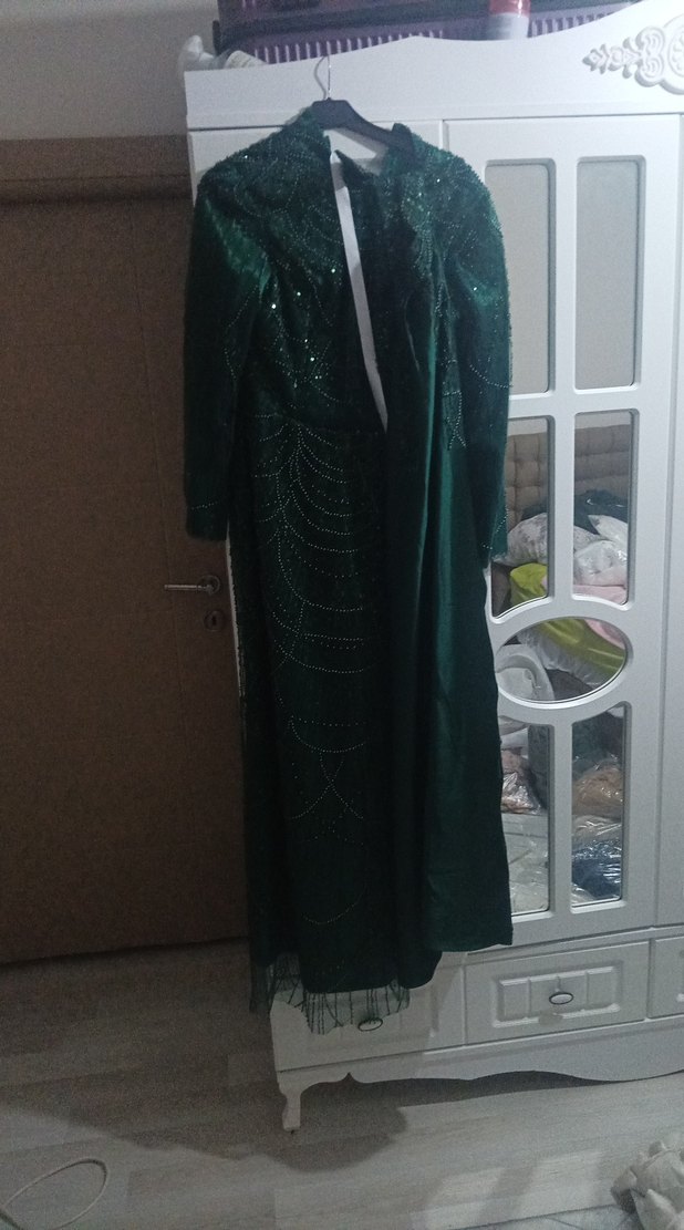 Yeşil Uzun Kollu Kadın Abiye Elbise