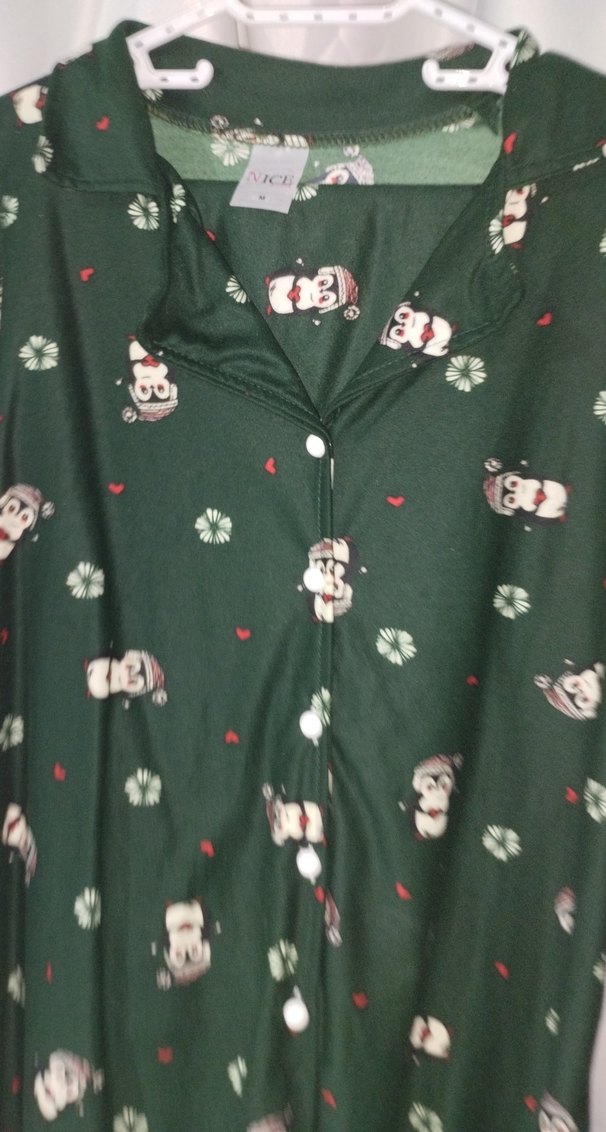 Uzun kollu, bol kesim, koyu yeşil renkli, baskılı sevimli karakterler içeren kadın pijama takımı, rahat sokak stili sunar.