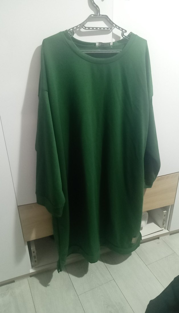 Uzun kollu, yuvarlak yakalı ve rahat kesimli yeşil tunik. Yumuşak ve sıcak kumaştan, gündelik rahat kullanım için uygundur.