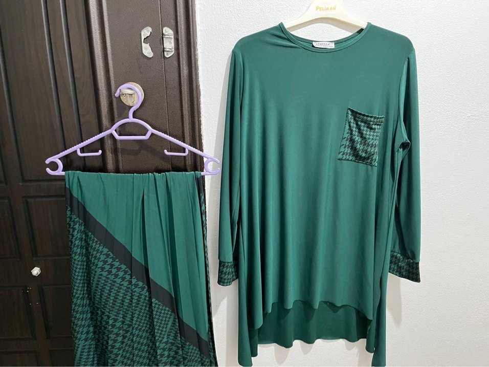 Yeşil Uzun Kollu Salaş Mini Tunik ve Etek