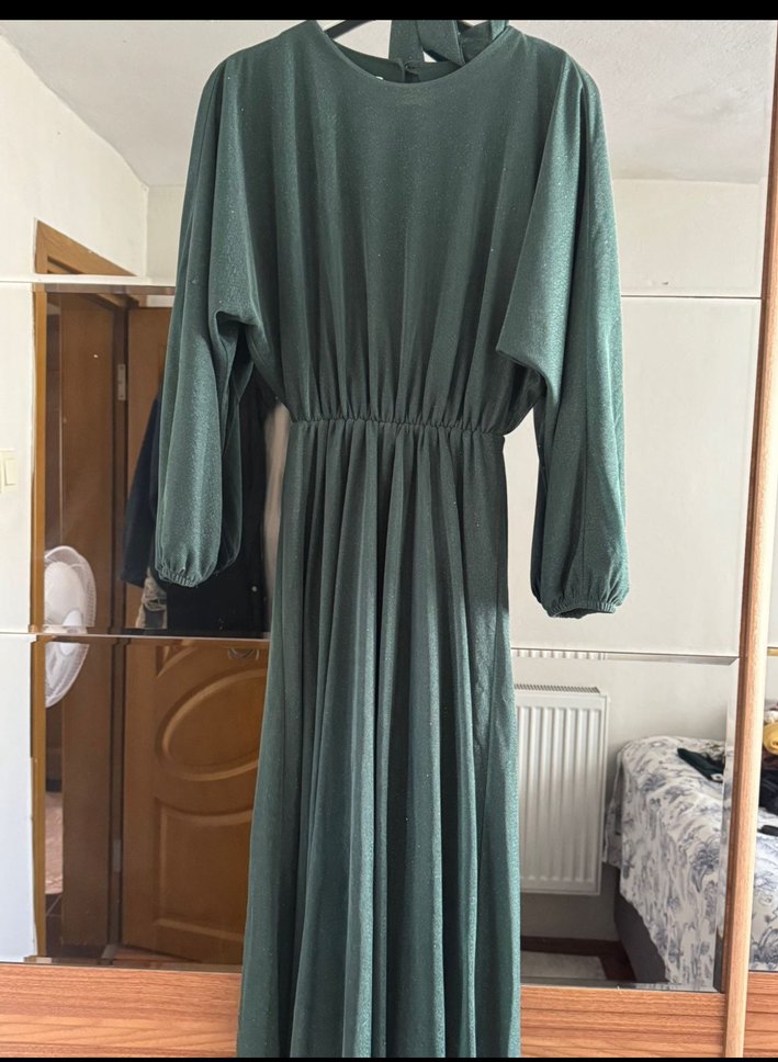 Yeşil Uzun Kollu simli Kadın Elbise şal hediye