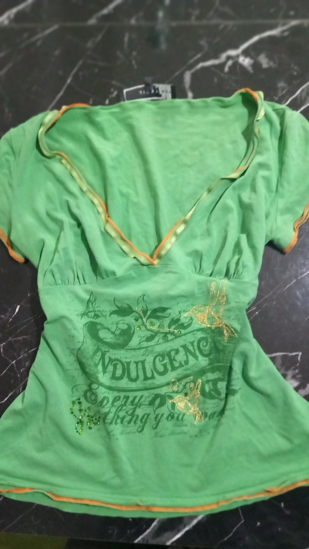 Yeşil renk, V yakalı ve kısa kollu drapeli tasarıma sahiptir. Parlak baskılı deseni ve vintage bohem tarzı dekoltesi biraz fazla L beden bana biraz büyük ve kötü durduğu için satıyorum yoksa çok güzel
