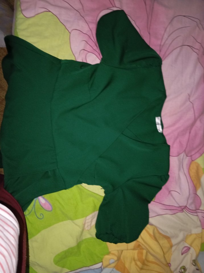 V yaka, kısa kollu, düğmeli, yeşil renkli, normal midi uzunlukta, elbise Xl beden bol kesimdir belinde kusagida vardir.Marka temsilidir