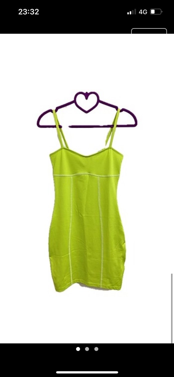 V yaka ve ince askılı, yeşil renkli, sentetik kumaştan yapılmış vücuda oturan midi elbise. Günlük sokak stili için zahmetsiz şıklık sunar.
