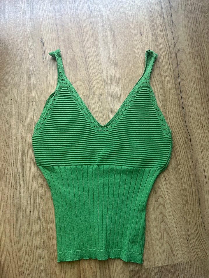 Yeşil V Yaka İnce Askılı Örgü Kadın Atlet