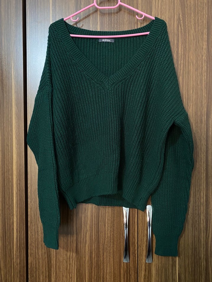 Yeşil V Yaka Kadın Kazak