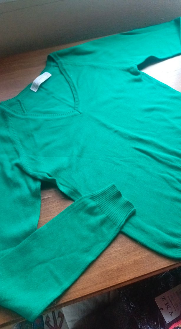 V yakalı ve uzun kollu, vücuda oturan lyrcralı triko süveter. Sayılı kez giyildi, kusursuz.