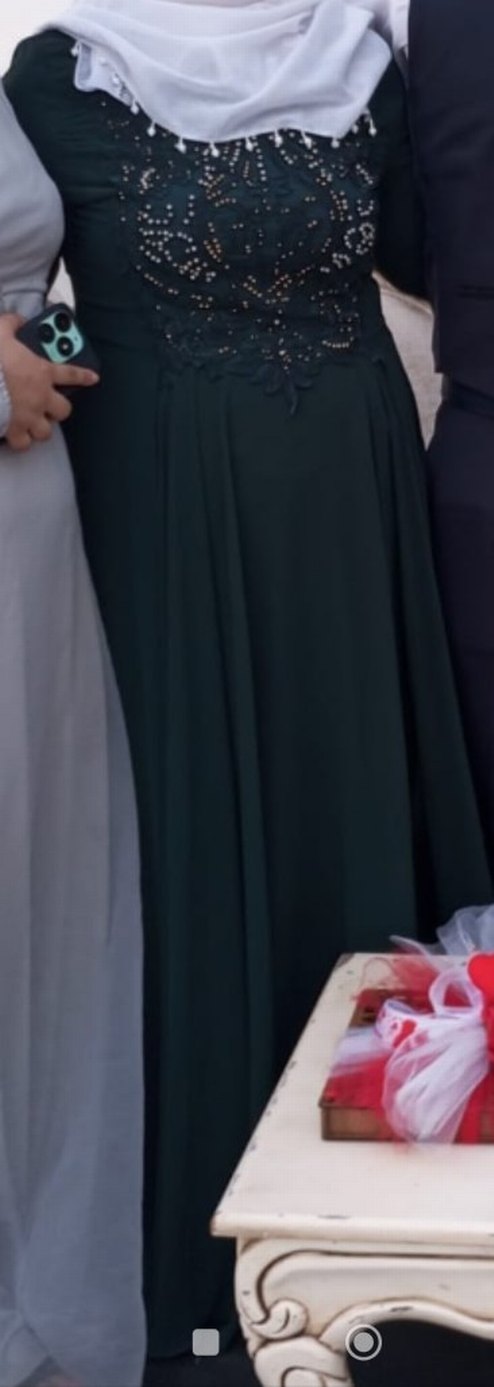 Bu yeşil midi elbise, drapeli, V yakalı ve kolsuzdur. Dar kesimi ve sade tasarımıyla düğünler için uygundur. 78. 80 kiloya uyumlu