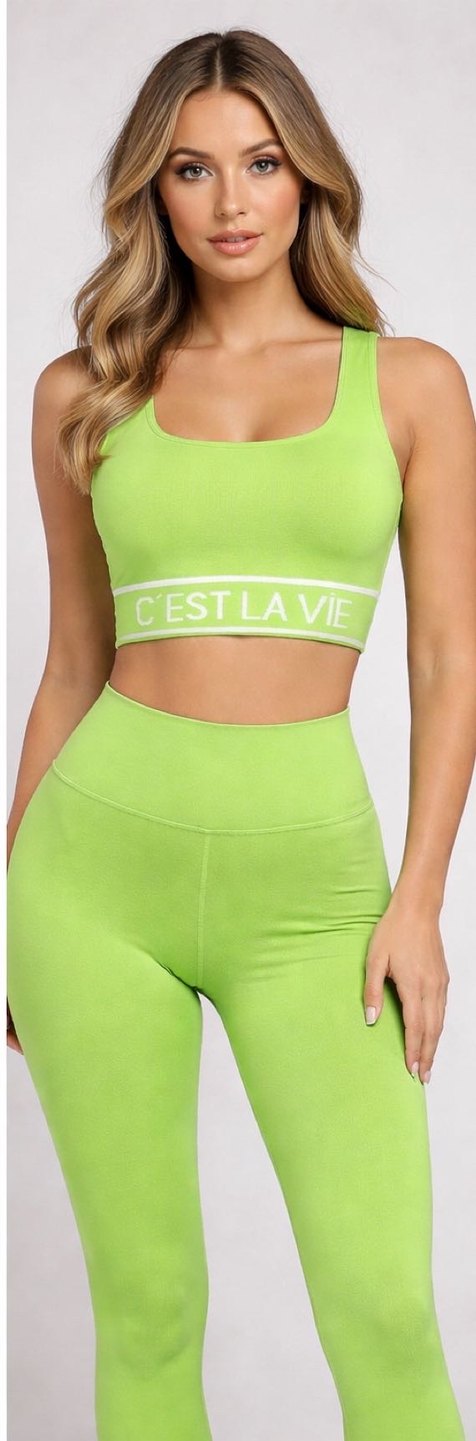 ADET FİYATIDIR ETİKETLİ ÜRÜNLERDİR SİYAH OLAN xl bedendir. Kalıbı genıstır Yeşil renkli, V yakalı ve askılı, elastik bantta "C'EST LA VIE" baskılı, sentetik kumaştan mini spor üst. Sokak stili ve spor için uygun. ♀️