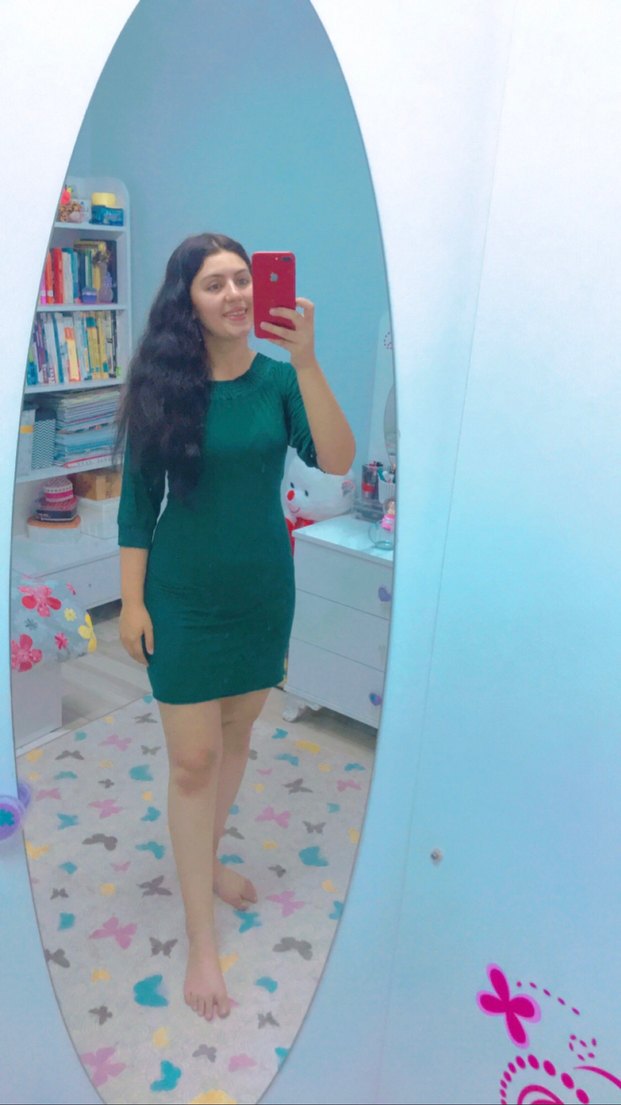 Bu yeşil, parlak sentetik kumaştan yapılmış elbise, V yaka ve uzun kolludur. Romantik bir akşam yemeği için idealdir ve minimal bir şıklık sunar.