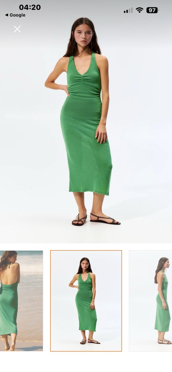 Yeşil renkli, V yakalı ve ince askılı uzun elbise, yumuşak örme bir kumaştan üretilmiştir. Günlük kullanıma uygun, zahmetsiz şıklık sağlar.