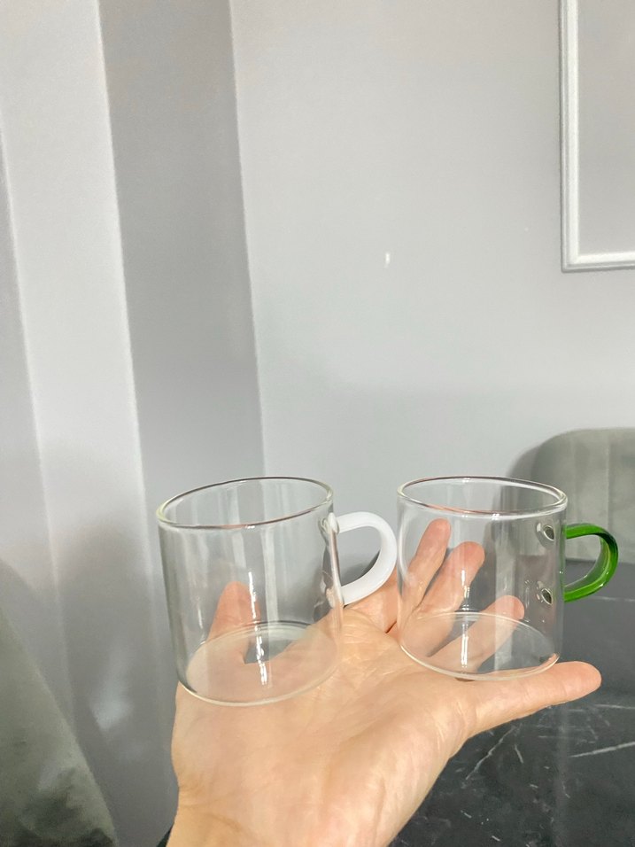 Yeşil ve Beyaz Kulplu Cam Bardaklar