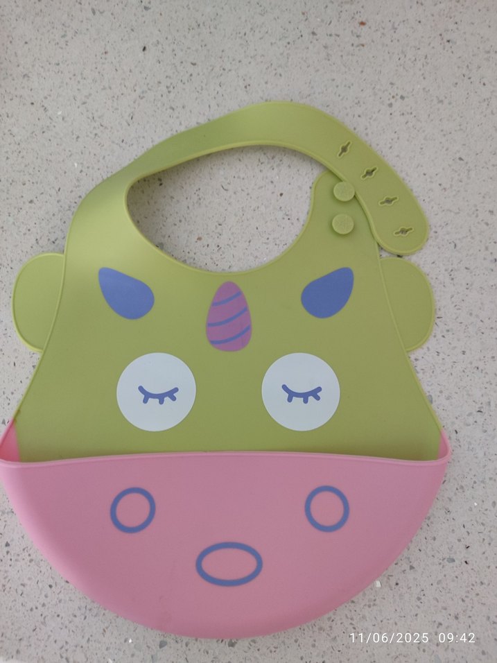 Yeşil ve Pembe silikon Bebek Önlüğü