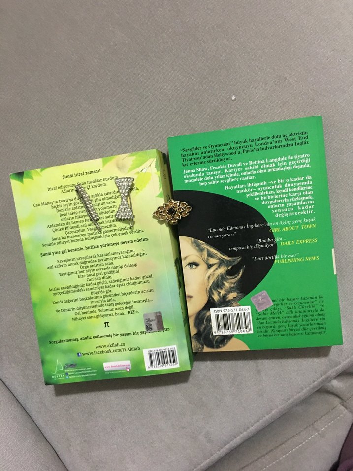 Yeşil ve siyah kapaklı, arka kapaklarında detaylı metin ve yazar bilgisi bulunan iki roman. Pi temiz diğer yıprana yok az sararma var kendi ilanında görülebilir 2 taşlı metal saç tokaları ve yüzük az kullanıldılar