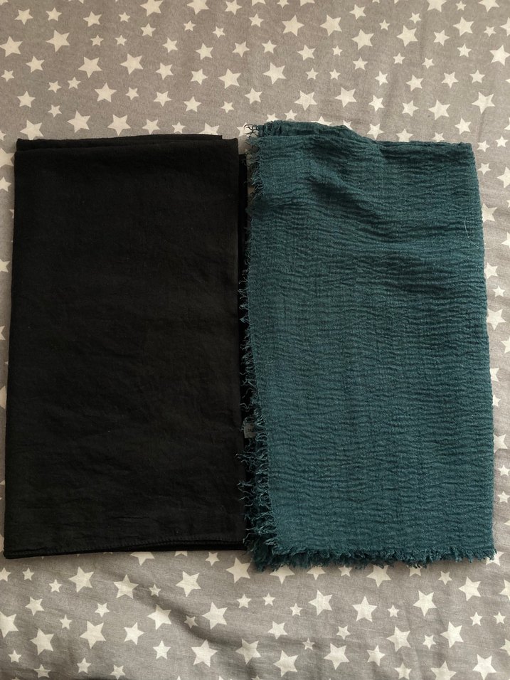 siyah pamuklu şal yeşil müslin şal tanesi 100 tl ikisi birlikte alınırsa 180