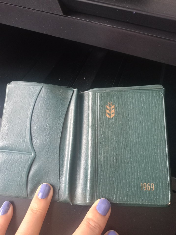 Parlak yeşil renkte, 1969 baskılı vintage erkek cüzdanı. Kart ve nakit için bölmeleri bulunan klasik tasarım. #ziraatbankası #ajanda