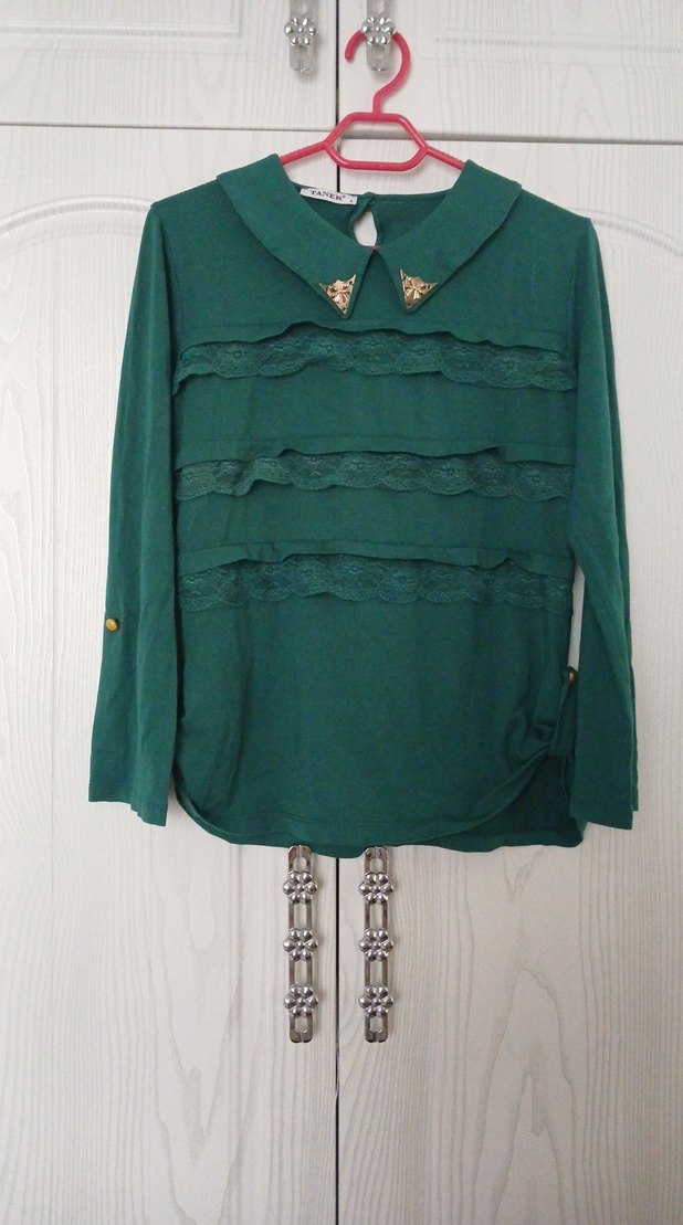 Yeşil renkli, uzun kollu ve yakalı , önünde fırfır detayları bulunur. Rahat kesimi ve normal boyuyla günlük kullanıma uygundur.