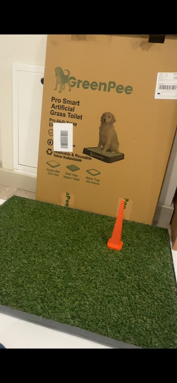 GreenPee Pro Smart yapay çim tuvalet, yıkanabilir ve tekrar kullanılabilir. Çim pedi, ızgara tepsi ve taban tepsisi içerir.