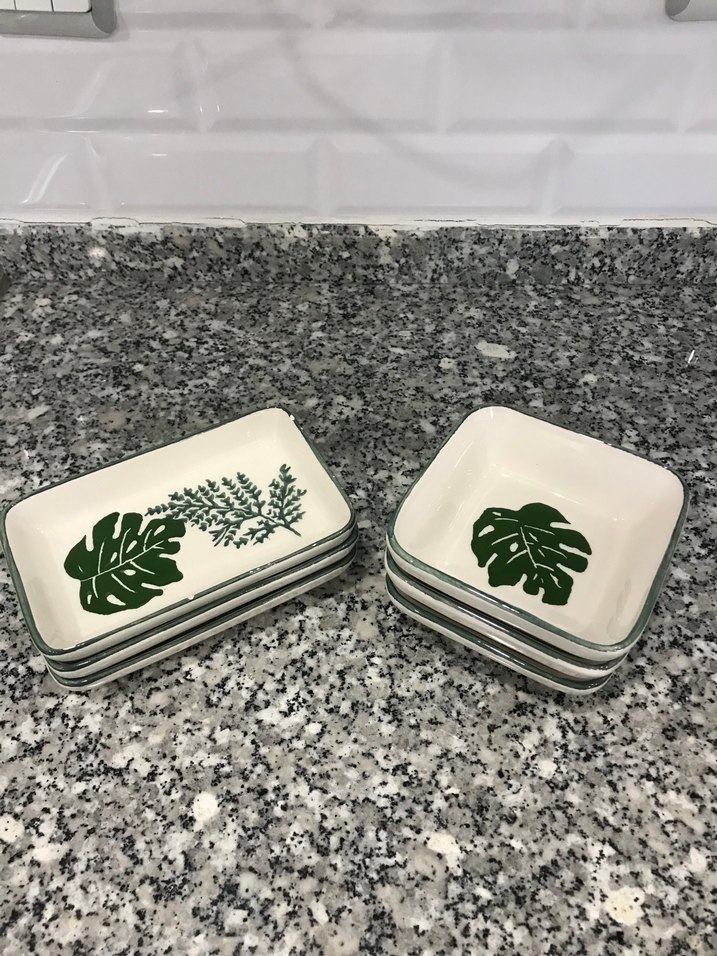 6lı Yeşil Yaprak Desenli Seramik Çerezlik Kahvaltılık