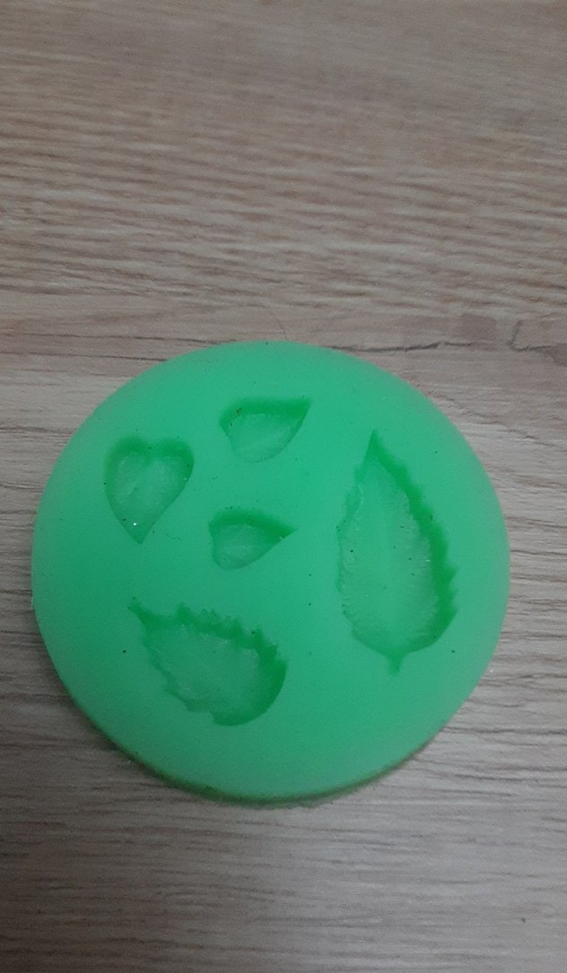 Yaprak ve kalp şekillerinde desenlere sahip yeşil sabun kalıbı, dekoratif sabun yapımına uygundur.