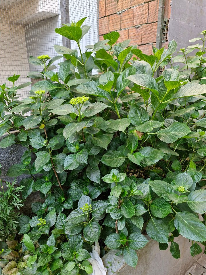 Geniş yapraklı, doğal yeşil bir bitki, canlı ortanca şuan oldukça çiçekli mor pembe çiçek açıyor her yıl mutlaka açar kışa dayanıklı kar altında bile kalsa ölmez. daha küçük boylarda mevcut.