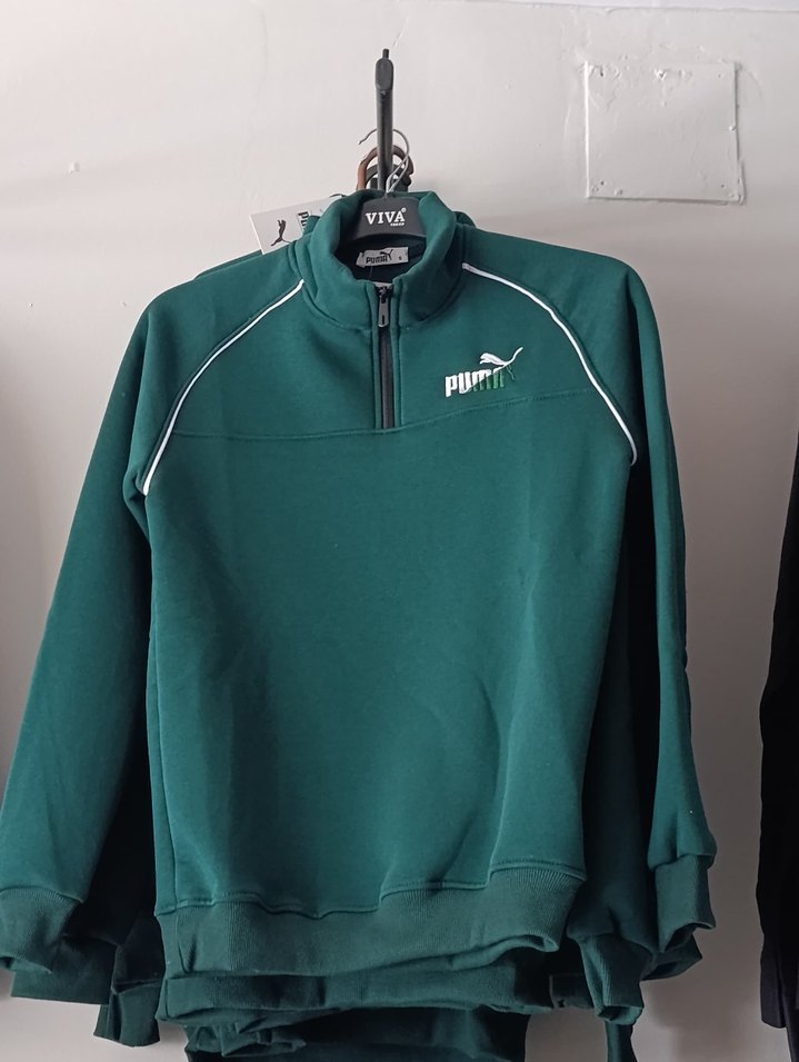 Yarım fermuarlı yüksek yakalı, uzun kollu, yeşil renkli, Puma logolu, sıcak ve yumuşak kumaştan erkek sweatshirt. Spor ve günlük tarzlar için uygun.