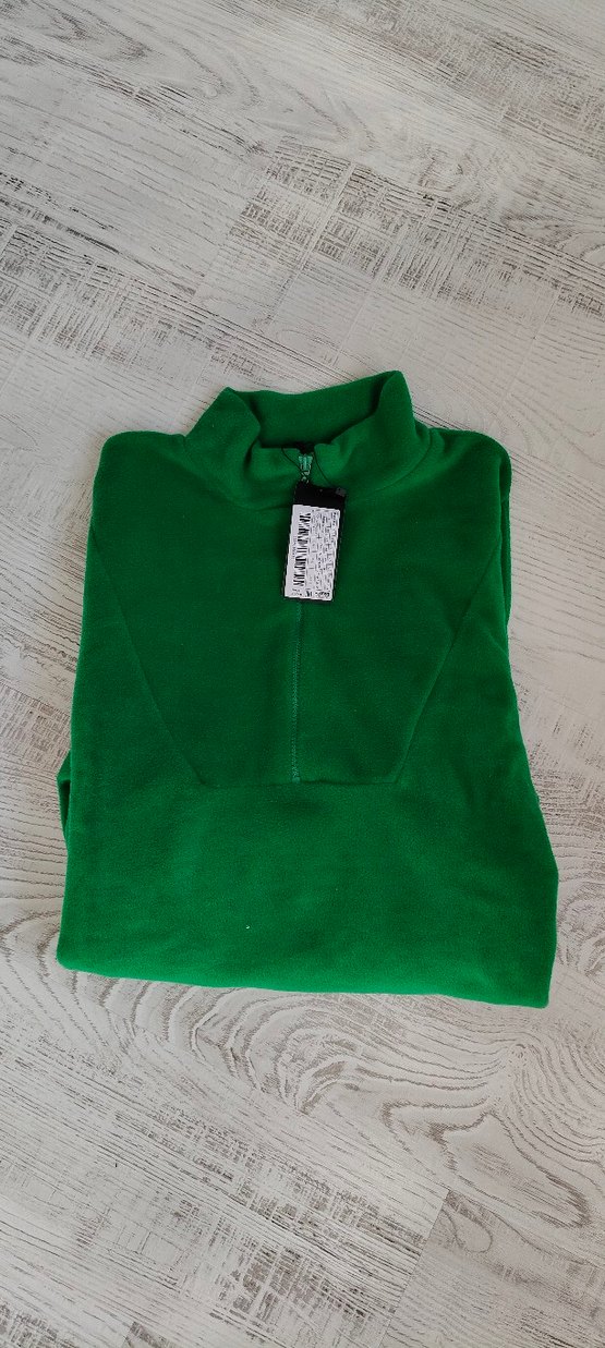 Yarım fermuarlı, yüksek yakalı yeşil kadin polar sweatshirt. Uzun kollu, bol kesim ve desenizdir. Rahat ve günlük kullanım için uygundur. tayt altlarında güzel durur etiketli kullanılmadı bol kesim uzun beli ayarlanabilir lastikli