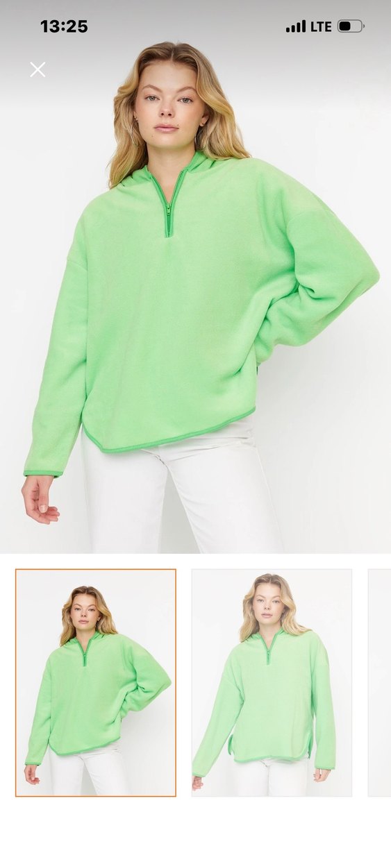 Pastel yeşil yarım fermuarlı sweatshirt, yuvarlak yaka ve uzun kollu. Rahat kesimi ve yumuşak kumaşıyla gündelik şıklık sağlar.