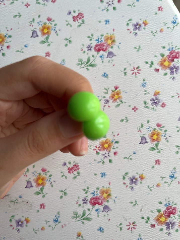Renkli tasarıma sahip yeşil diş kaşıyıcı ve çıngırak, bebeklerin diş çıkarma döneminde rahatlaması için uygundur. Kolay tutulur ve bebekler için güvenlidir.