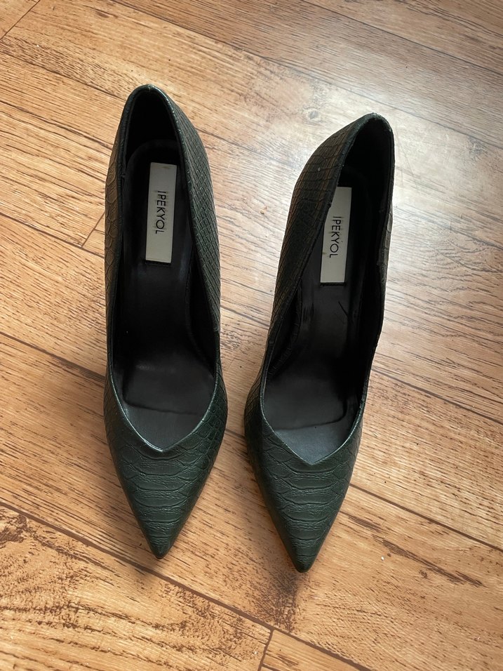 İpekyol Marka Yeşil Yılan Derisi Desenli İnce Topuklu Stiletto