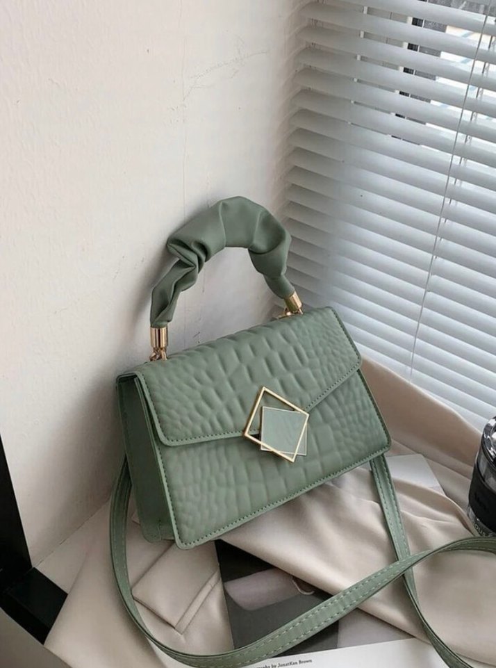 Pastel yeşil renkli, yılan derisi desenli deri çanta, tokalı kapak detayıyla günlük sokak stili için klasik ve minimal bir şıklık sunar.