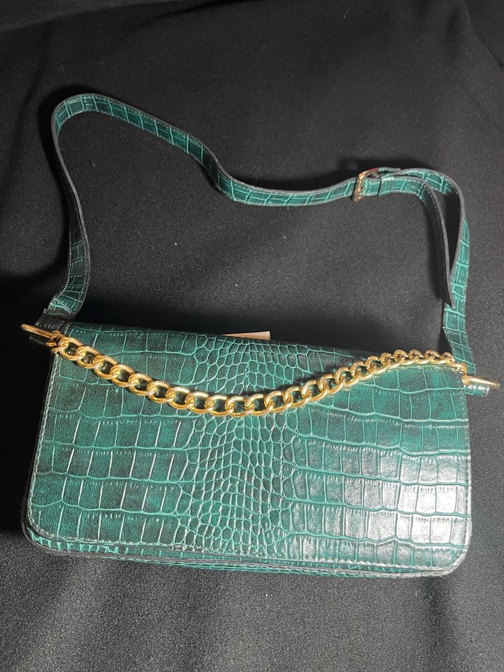 Turkuaz yılan derisi desenli, zincir detaylı deri çanta, günlük kullanım için uygun, bohem ve retro stile sahip. Hiçbir kusuru yok kotondan alındı