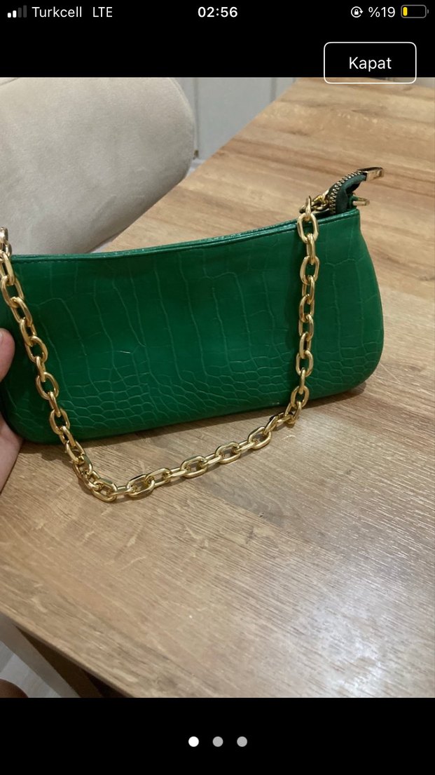 Yeşil Yılan Derisi Desenli Zincir Detaylı Deri Çanta