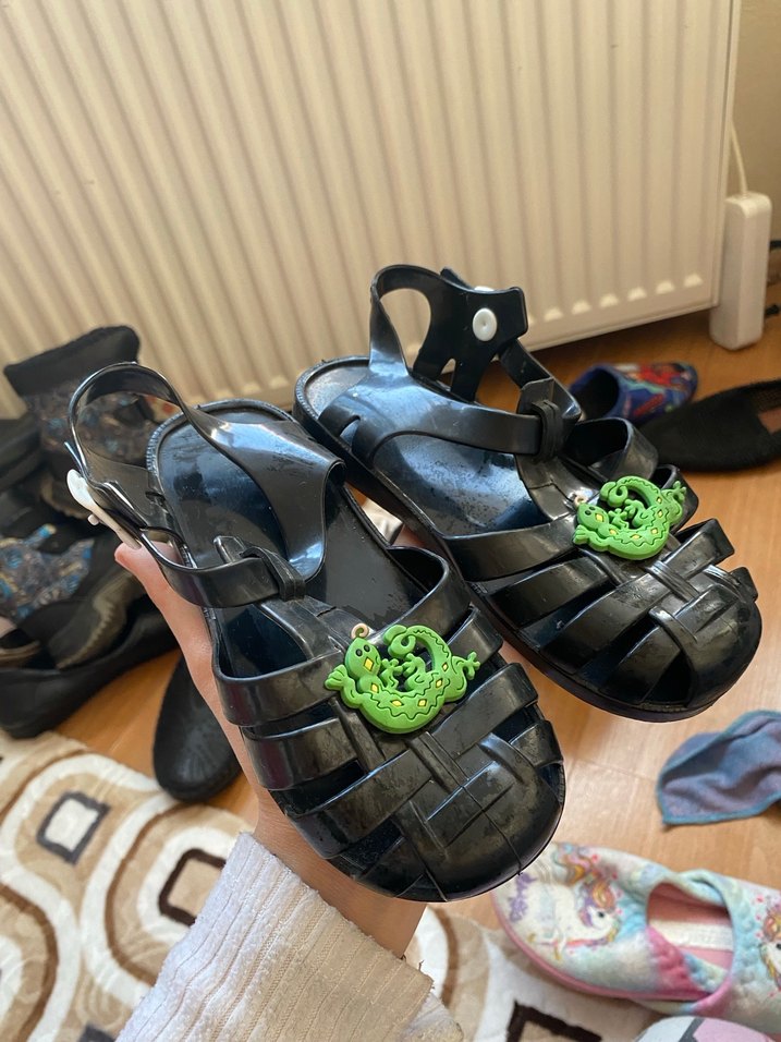 yeşil yılan desenli çocuk sandalet