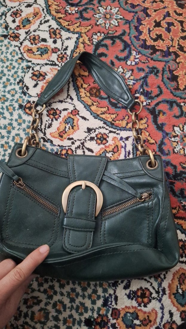Yılan desenli ve tokalı detaylı yeşil deri kadın çantası, bohem tarzını yansıtıyor. Günlük kullanım için uygun.