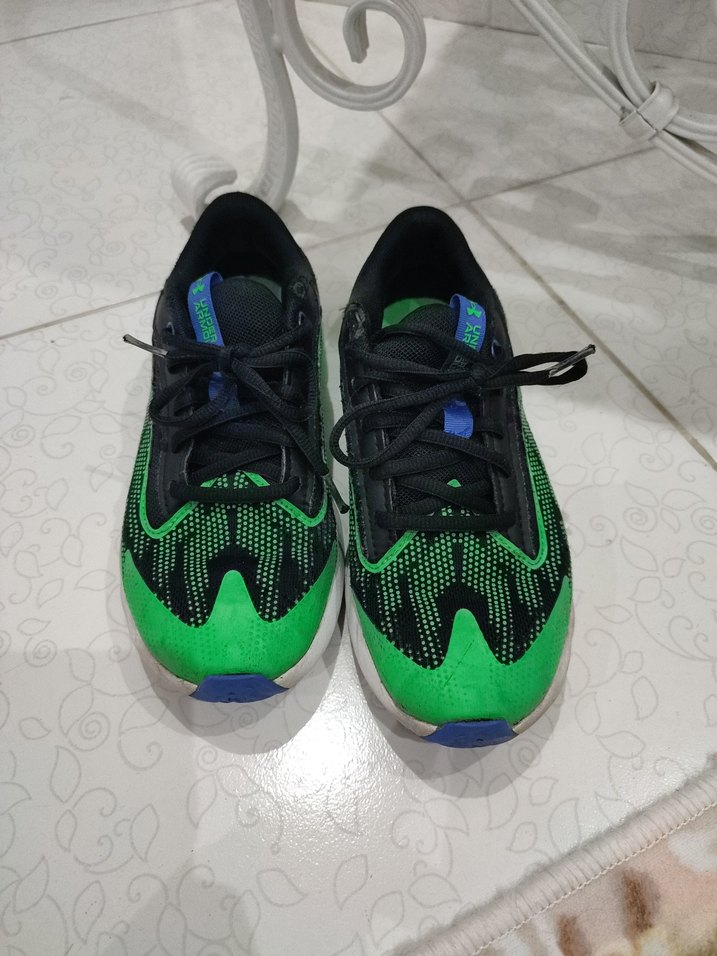 Yeşil renkli yılan desenli erkek spor ayakkabısı, kauçuk tabanlı ve bağcıklı, sokak modasına uygun tarzda. Hollanda dan alındı. Under Armaur markadına ait orjinal.