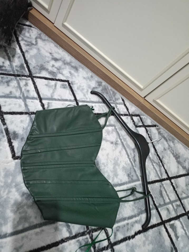 Yılan desenli yeşil mini büstiyer, straplez ve ince askılı, kemer detaylı, sokak modasına uygun ve dış mekan kullanımı için ideal.
