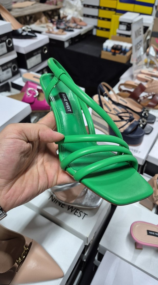 Yeşil renkte, yılan desenli, lastik malzemeden stiletto topuklu kadın terlik. Tokalı bantlarıyla sokak modasına spor bir dokunuş katıyor. sadece 39