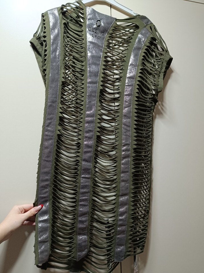 yesil yılan desenli, triko kumaştan yapılmış, strappy kollu ve yarıktan oluşan, normal boyda, vücuda oturan midi elbisedir. mayo veya bikini üzerinde çok hoş duruyor
