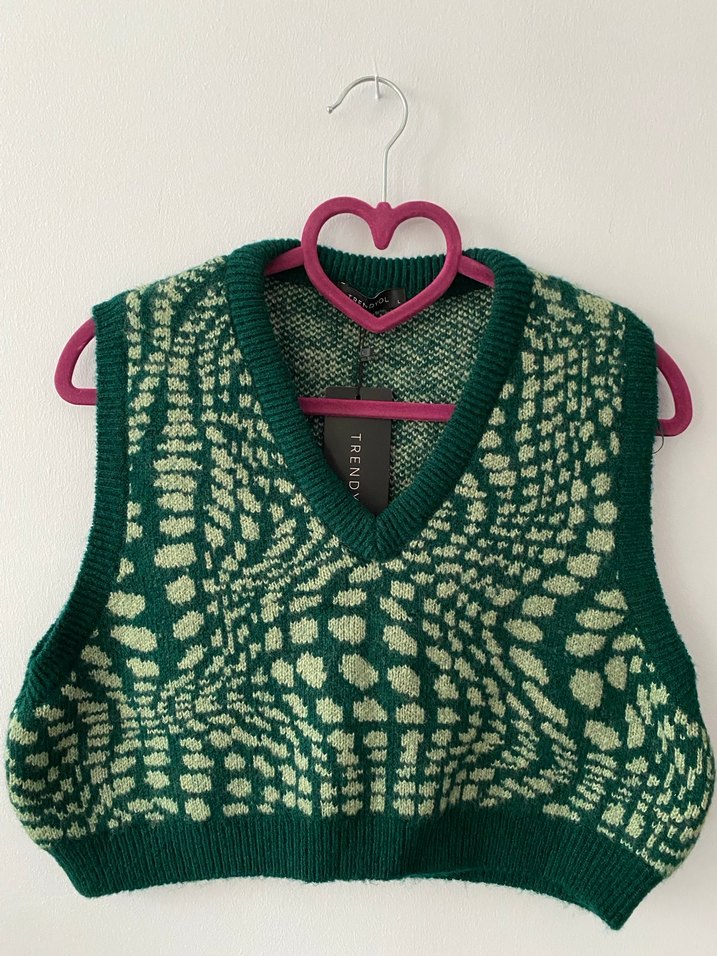 Yeşil Yılan Desenli V Yaka Triko Süveter
