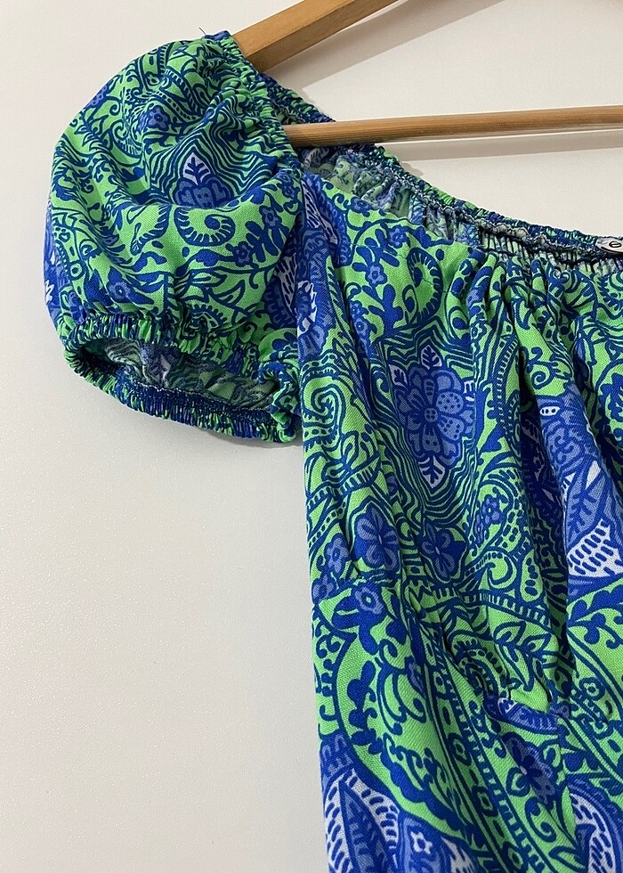Yeşil yırtmaçlı günlük elbise