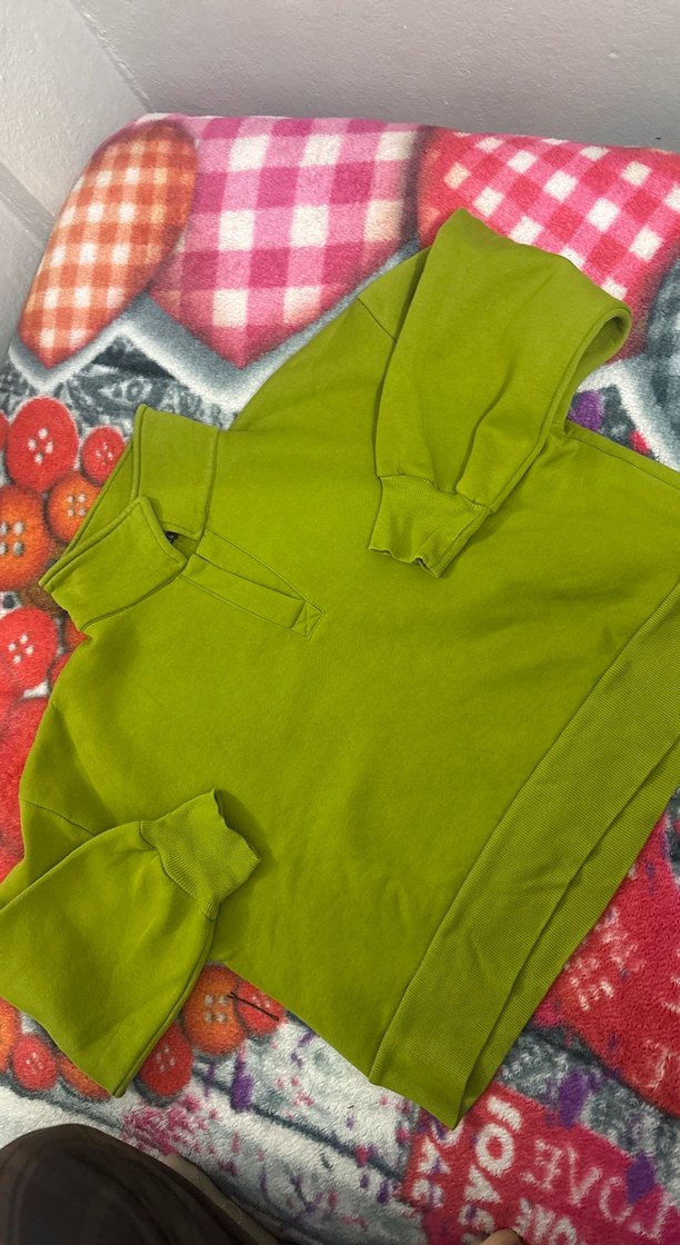 Rahat kesim, yüksek yakalı ve fermuarlı yeşil sweatshirt, yumuşak ve sıcak kumaştan üretilmiştir. Günlük athleisure tarzına uygundur.